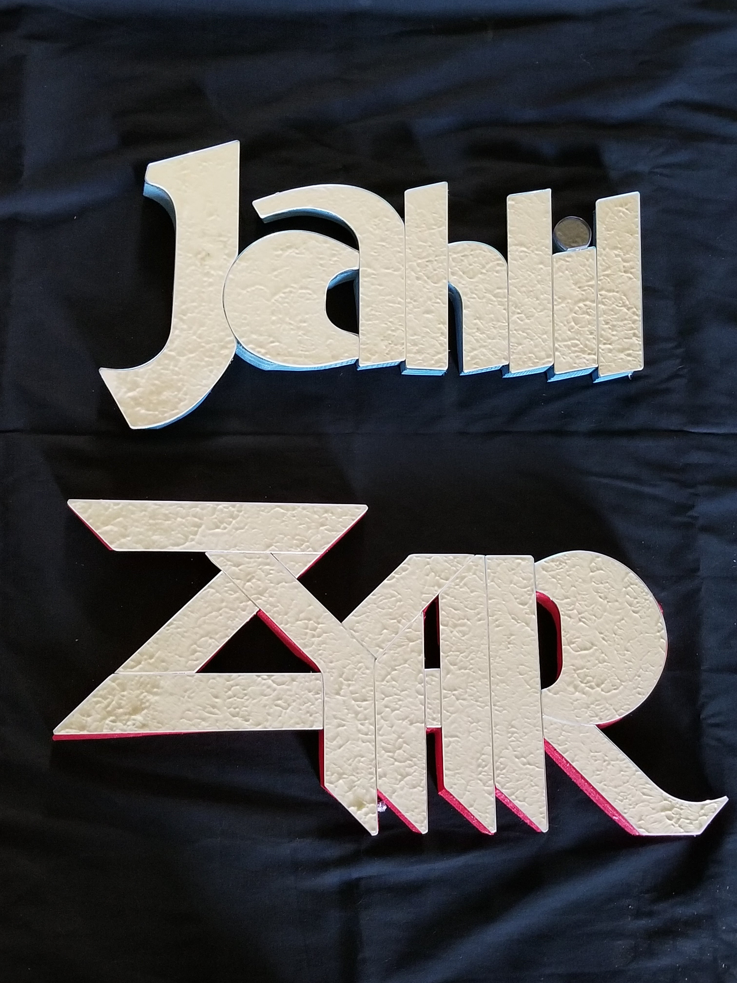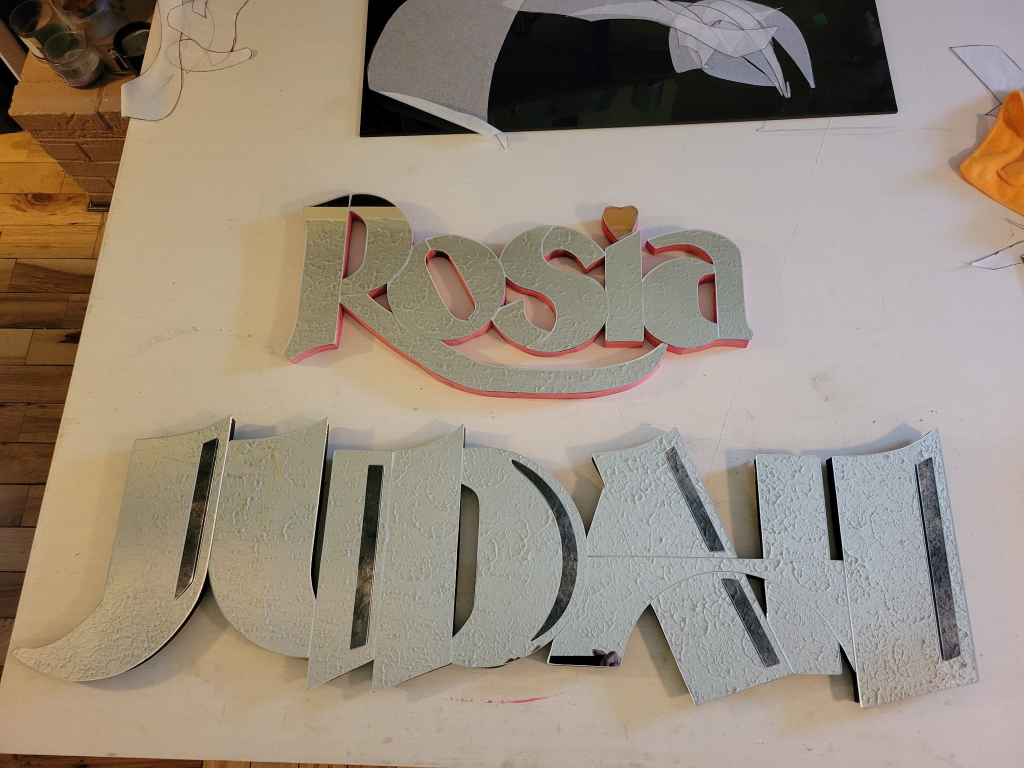 "A beautifully crafted custom mirrors showcasing the names Rosia and Judah in elegant script, adding a personal and timeless touch to any space."
