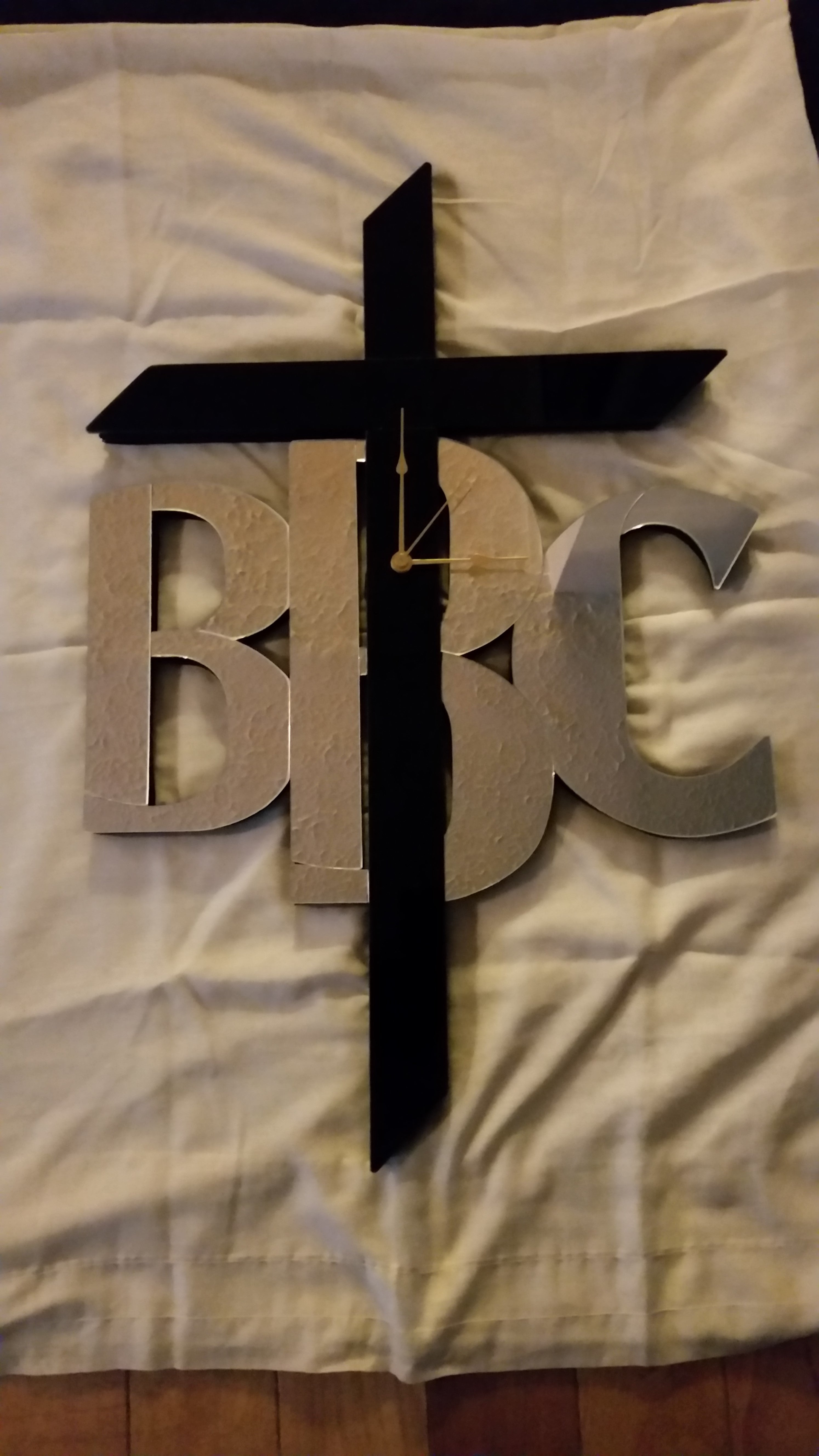 "A beautiful custom mirror showcasing an M for Maurice and K for Kyle as a wedding gift united in the middle with a clock to represent timeless love"