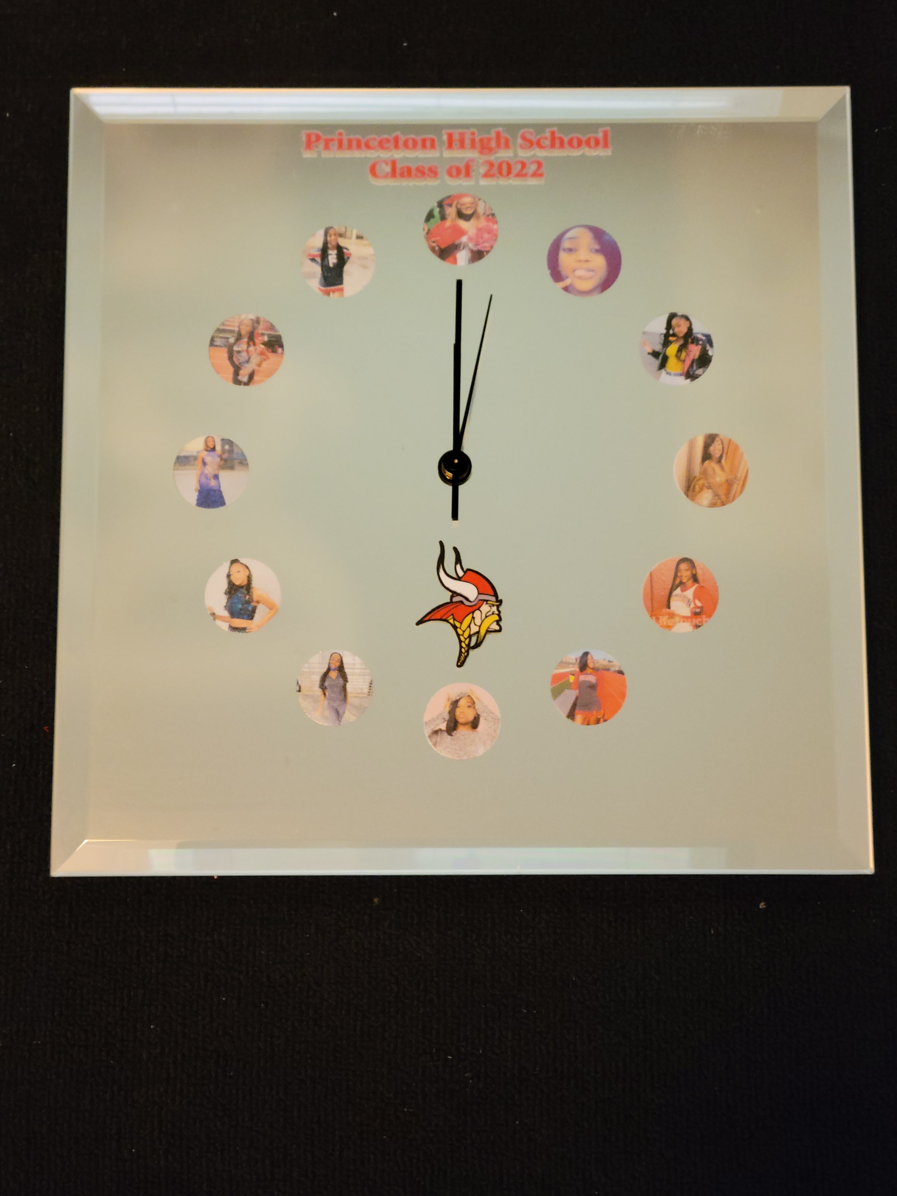 "A handcrafted square mirror clock celebrating a son’s growth from birth to young adulthood."