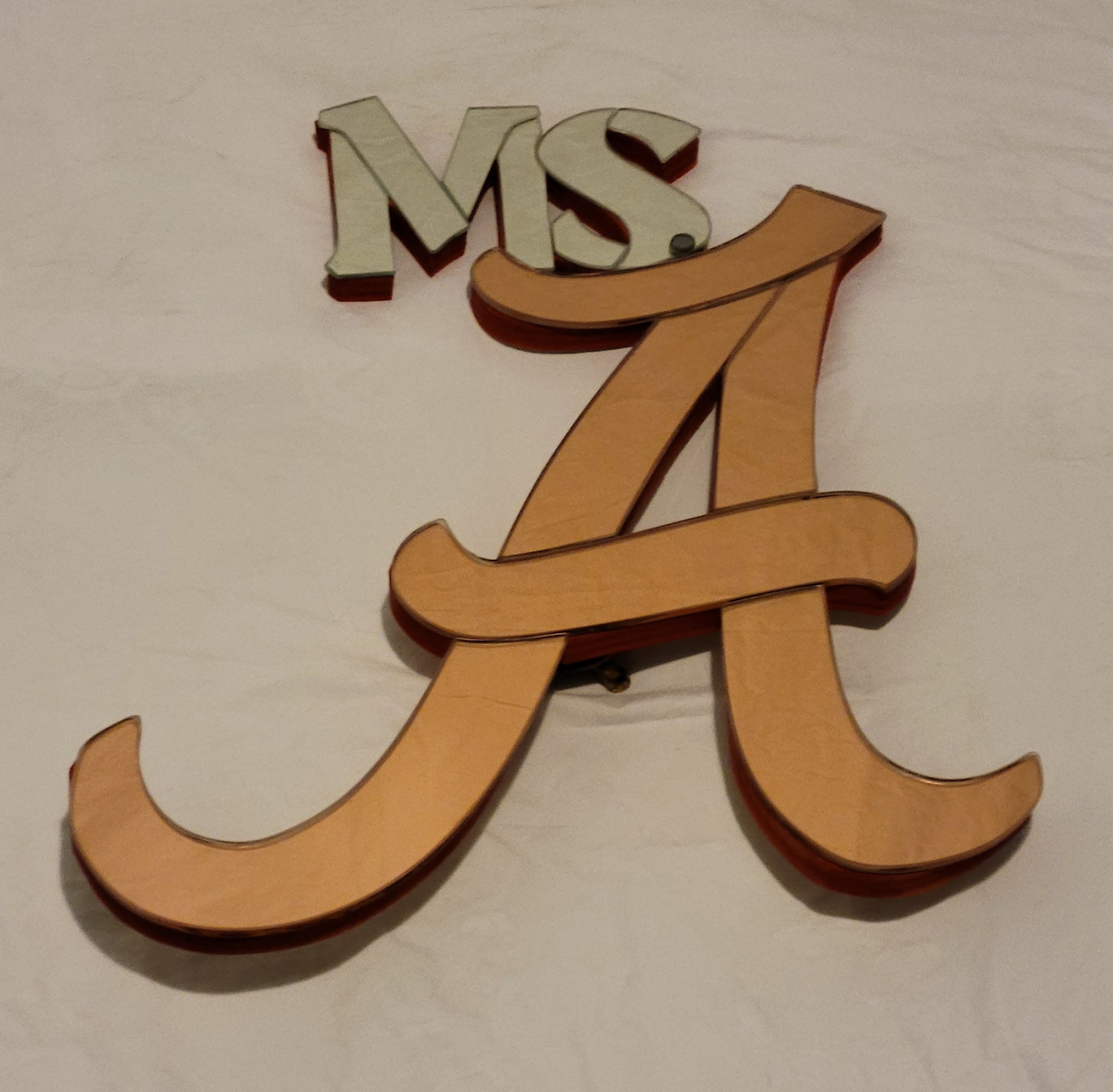 “A custom mirror for Ms. Ann, blending her name with the iconic Alabama ‘A’ — a personal tribute to her love for the Crimson Tide.”