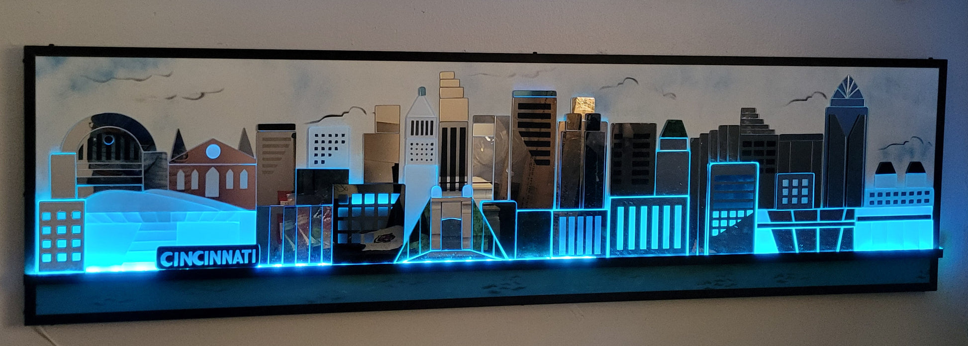 After returning home from vacations or road trips to any destination south, the view of the Cincinnati Skyline is always a welcoming site, as I drop down thru “the cut in the hill”.